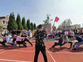 ~ 9月28日上午,定远县永康中学工会组织的“庆国庆• 迎中秋”教职工拔河比赛在运动场举行。本次拔河比赛由体育老师担任裁判,男女教师分为甲乙两组决一胜负。比赛现场,伴随着裁判的一声令下,双方队员紧紧抓牢手中的绳子,齐心协力往后拉。校长兼啦啦队长董志友高喊着“加油,加油”,为各队加油打气。此时的操场上,吆喝声,欢笑声此起彼伏,热闹非凡。