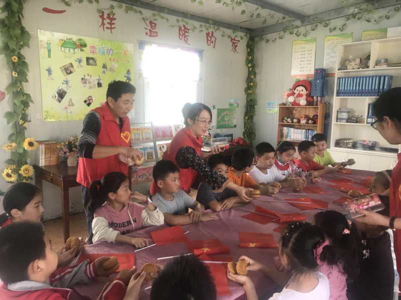 ~ 活动中,副书记肖克川首先祝福留守的孩子们中秋、国庆双节快乐,并勉励他们要好好学习,自立自强,懂得感恩,争做一名品学兼优的好学生。接着,留守儿童之家管理员李晓晓老师带领孩子们一起制作喜迎中秋手工作品,爱心爸爸妈妈们把精心准备的中秋月饼送到留守孩子们手中。留守儿童们还用学校的“亲情电话”跟远方的家长通话聊天。最后,大家合影留念。