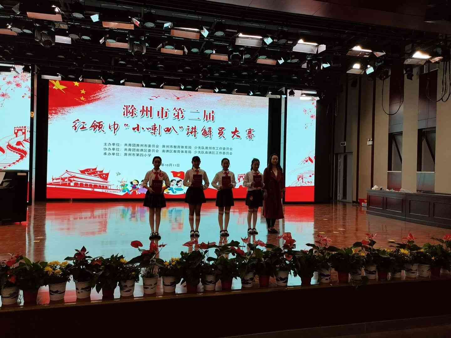 ~ 10月11日,滁州市第二届红领巾“小喇叭”讲解员大赛在南谯区第四小学举行,藕塘小学三名“小蜜蜂”志愿服务队队员代表定远县参加了此次比赛。