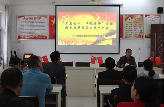 10月10日下午,七里塘学校党支部在党员活动室召开“不忘初心、牢记使命”主题教育读书班集中研讨会。
