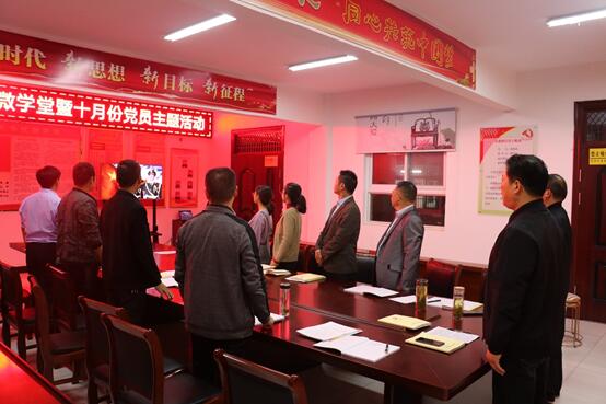 活动由青洛初中党支部书记单国选主持,学校全体党员同志及入党积极分子参加活动。 活动中,学校全体党员起立,奏唱中华人民共和国国歌《义勇军进行曲》,观看了微视频《以前行致敬初心》,单国选书记上了一节以“宣讲安徽省委主题教育活动‘三个以案’警示教育内容”为主题的生动的微党课,全体党员结合党课内容交流心得体会。全体党员观看配乐朗诵课件,欣赏了新中国成立70周年的伟大巨变。伴随着《国际歌》,由魏圣松副书记领誓,全体党员重温了入党誓词。魏圣松副书记传达了县教体工委《十月份党建工作要点》,并结合党建工作要点具体安排部署了青洛初中支部十月份学习活动。 单国选书记最后强调,在平时的工作中,共产党员要事事做模范,处处当表率,不忘初心,牢记使命,用行动让胸前的党徽闪亮。(杨仁宏)