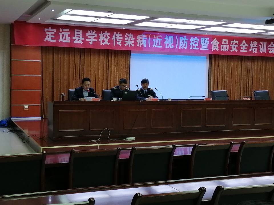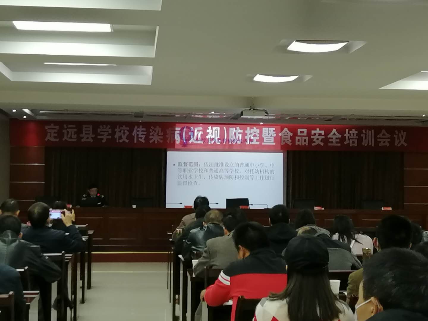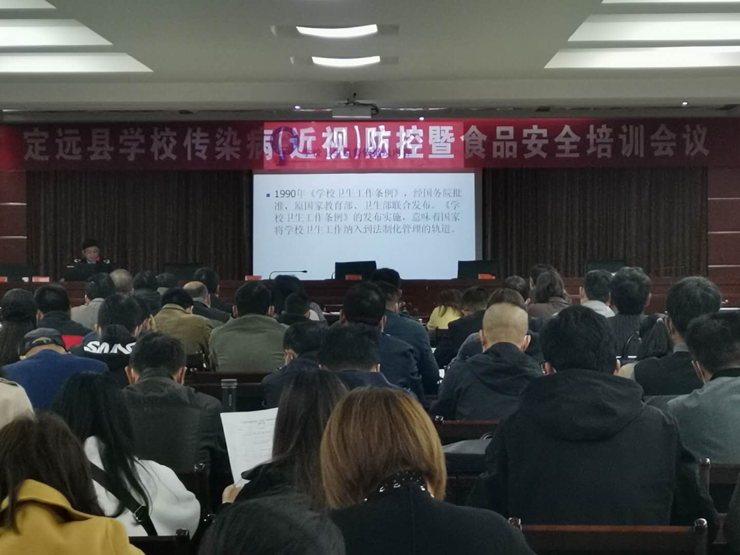~ 为做好全学校幼儿园传染病(近视)防控和食品安全工作,保障青少年学生身体健康和生命安全,保持学校正常的教学秩序,维护社会稳定。定远县教体局认真贯彻落实《食品安全法》《学校食品安全与营养健康管理规定》(45号)令,《传染病法治法》《学校卫生工作条例》《中小学学生近视防控工作方案》以及省市一系列文件和会议精神,经县政府同意,10月18日,定远县教体局联合县卫健委、县市场监督管理局共同举办全县学校传染病(近视)防控暨食品安全培训会,会议邀请省市场监管局餐饮处处长赛运和,省疾控中心食品营养与学校卫生科科长、医学博士孟灿同志、县卫生综合执法大队熊成刚、县疾控中副主任张世涛进行授课。这次培训规格高、内容多、任务重,全县各学校幼儿园、食品安全成员单位及各乡镇近300人参加培训。