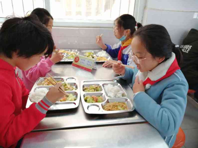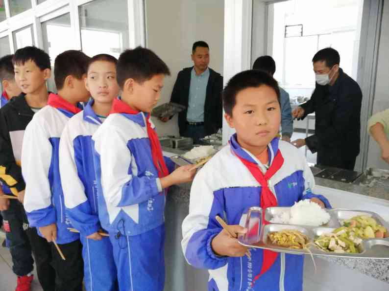 ~ 为了进一步做好关爱留守儿童工作,搞好他们的课后服务工作,彻底解决外出务工父母的后顾之忧,定远县池河二小从孩子们的衣食住行,全方位展开关心帮助。10月20日,学校的“爱心食堂”正式投入使用!随着上午第三节课的下课铃响起,全部留守儿童在老师的带领下,快乐有序地来到了学校餐厅做起了就餐的准备。值班的老师早早穿好衣服,带好口罩、帽子准备分饭、分菜;所有同学排着整齐的队伍准备取餐,一切都是井然有序,安静温馨。芹菜豆腐干、肉烧豆芽菜、西葫瓜炒火腿……今天的午餐真是美味啊!“真好吃,像妈妈做的”、“我觉得比我家做的还好吃”,“我最喜欢吃火腿”……吃完饭,许多孩子开心地小声议论着。