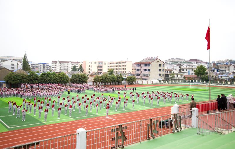 ~ 赛场上,同学们热情高涨,身穿整齐划一的校服,井然有序。伴随着熟悉而又轻快的音乐,同学们个个精神抖擞、气宇轩昂,充满着无限的朝气和活力,展现出积极进取、乐观向上的精神风貌。
