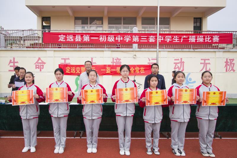 ~ “ 我宣布:定远县第一初级中学第三套中学生广播操比赛开幕!”,伴随副校长严广军铿锵有力的发令声,比赛开始了。