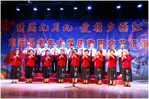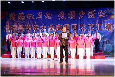 ~ 岁岁重阳,今又重阳,不是春光,胜似春光。为弘扬中华民族尊老爱老助老的传统美德,丰富老年人的晚年生活,定远县老年大学于10月24日上午在学校礼堂举办了“情满九月九 爱携夕阳红”为主题的重阳节活动,为学员朋友们送上节日真挚的问候和祝福,同时表达崇高的敬意。老年大学六百多学员参加了此次活动。