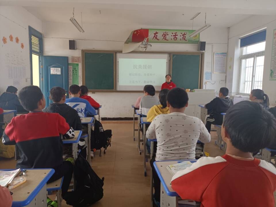~ 利用国旗下讲话,学校领导带领全校师生学习习近平总书记在纪念中国人民志愿军抗美援朝出国作战70周年大会上重要讲话精神,宣读学校抗美援朝教育活动方案,安排各部门、各班级开展相关活动。利用班班通,组织学生观看《血战长津湖》等优秀影片,引导学生了解和认识抗美援朝战争的艰辛历程和深远意义,学习蕴含其中的伟大爱国主义精神和革命英雄主义精神。各班举办主题班会。围绕着抗美援朝主题,有的班级给学生介绍抗美援朝历史,有的班级组织学生讲抗美援朝故事,有的班级开展抗美援朝知识竞赛……各班根据实际情况,开展了丰富多彩的主题教育活动,对引导学生铭记历史、珍爱和平、立足当下、勤奋学习起到了良好的作用。团支部书记给团员们讲述抗美援朝故事,然后组织共青团员重温入团誓词,引导学生缅怀革命先烈的英勇事迹、学习英雄模范的崇高精神,追寻先辈足迹、继承革命传统。(供稿:徐先贵 审核:余忠刚)