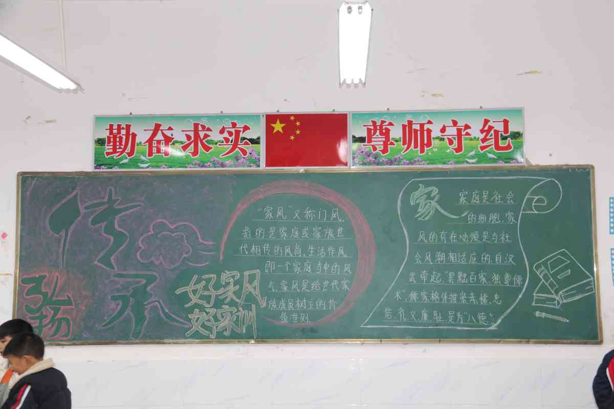 此次主题教育活动主要以国旗下讲话、黑板报、主题班会、故事会、征文比赛等形式开展。树11月16日,年家岗小学举行了“传家训 立家规 树家风”主题升旗仪式,六年级二班学生吴叶涵用讲故事的方式向全校师生分享了她的家规家训,让同学们受益匪浅。在班主任的组织下,各班开展了“传家训 立家规 树家风”主题班会。同学们在班会中分享与交流自己的家规与家训。部分班级还安排优秀学生讲自己的家教故事,晒自己的家庭生活。