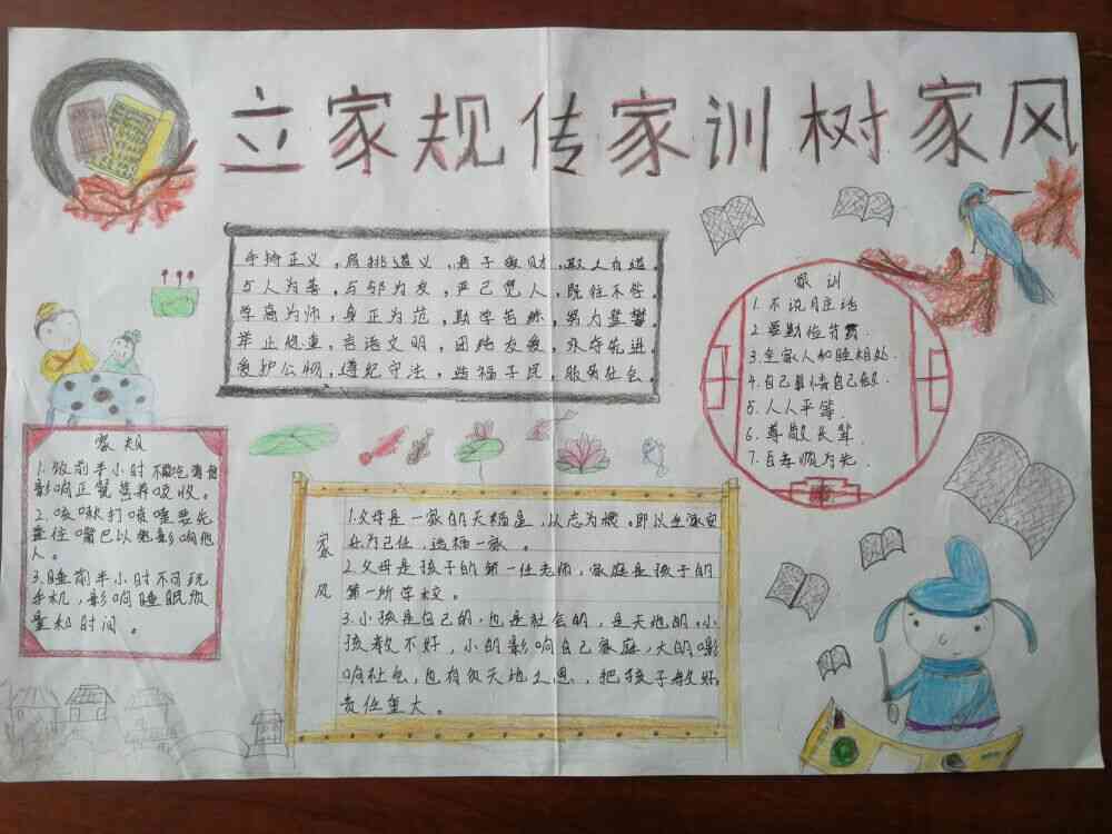 ~ 为确保活动有序开展,该校成立了以校长孙夕波为组长的“树家风、立家规、传家训”主题教育活动领导小组,制定活动方案。该校具体开展了以下几项活动:一是召开教师会,加强思想认识;二是利用国旗下讲话进行倡议;三是召开主题班会,加强宣传;四是开展手抄报比赛活动;五是深入学生家庭,与家长沟通,家校互动,促进本次活动。