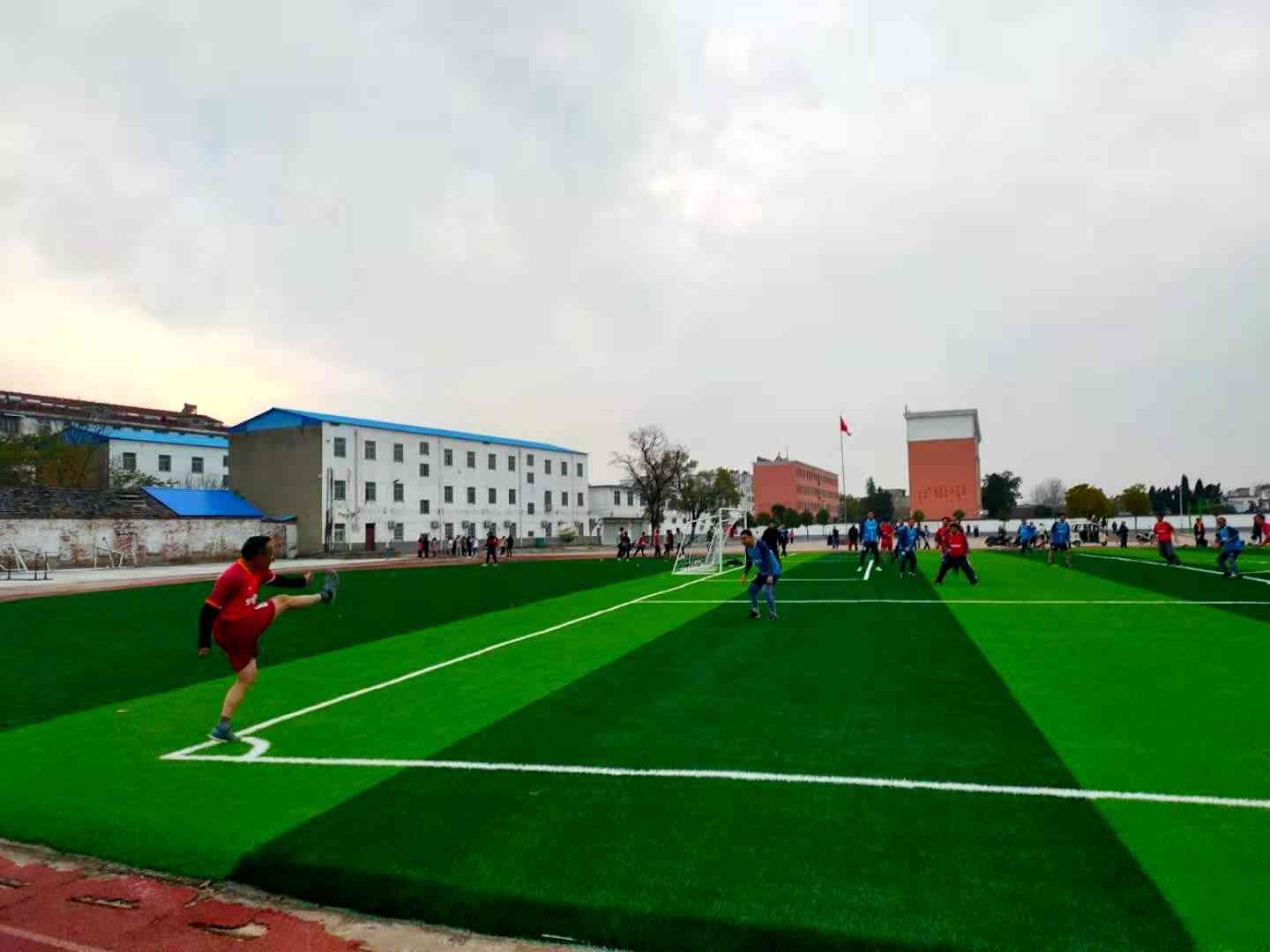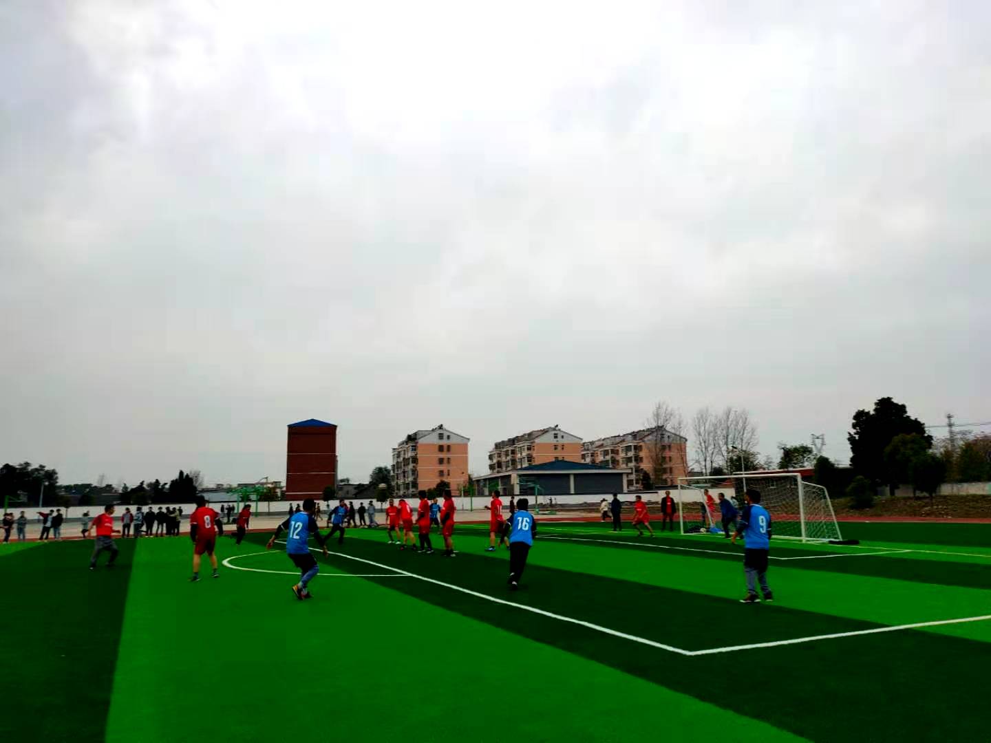 ~ 本次比赛,本着自愿原则自由报名,每组限15人。虽然该校教职工整体年龄偏大,但是报名热情很高。经过选拔,红蓝双方各确定15人名单。球场上,队员们奋勇拼搏,各展球技,也相互配合,发挥团队精神,将课堂上的激情带到了场上。赛后队员们都在谈论着比赛的感受,大家一直认为本次比赛既让自己放松的身心,也意识到健康的重要。(供稿 张德鹏 程光明 审核 柏传文)