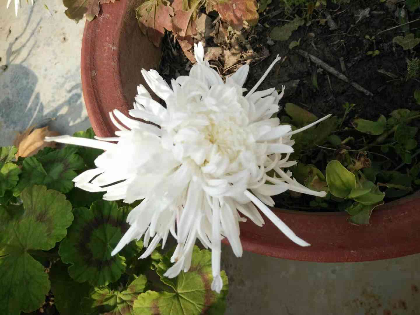盆栽冬菊放冰花,袅袅丝丝扮嫁纱。