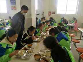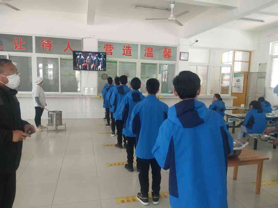 寄宿学生分批分散就餐。学校严格落实食堂从业人员健康状况排查、食品卫生合法规范、食堂餐具炊具消毒等防控措施,采取错时、错峰、分散就餐模式,排队取餐时间隔1米,避免扎堆就餐、面对面就餐,减少学生交谈,确保就餐安全。