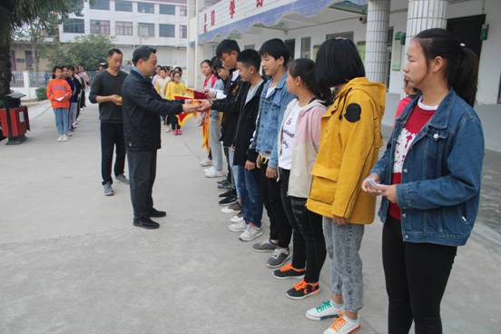 10月21日上午,定远县岱山学校总务处举行文明寝室流动红旗授旗仪式。