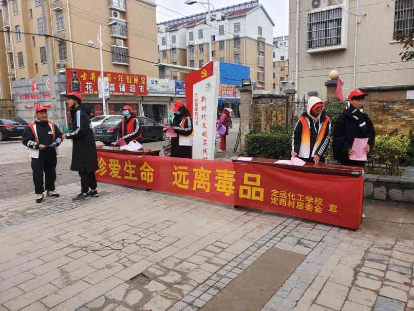 ~ 为普及毒品知识、传播禁毒理念,让居民全面了解毒品的危害,提高社区居民防毒、拒毒意识,10月24日,定远化工学校禁毒志愿者在校团委、政教处带领下,利用周末,联合定远县定城镇定西社区开展了“宣传进社区,禁毒暖人心”宣传活动。