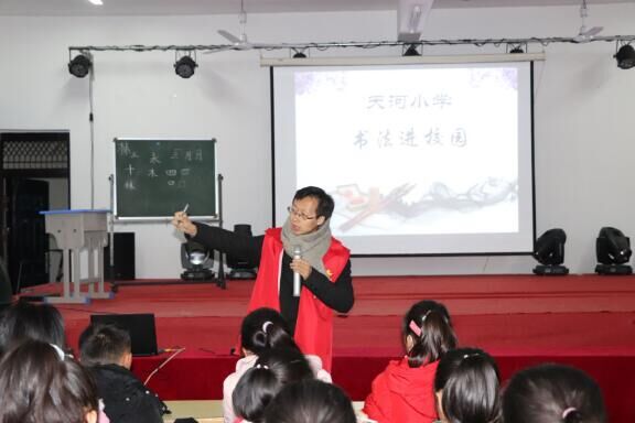 11月26日下午,定远县教体局行知书法教育志愿者走进天河小学,开启“书法进校园”活动,该校四五年级学生参加了此次活动。