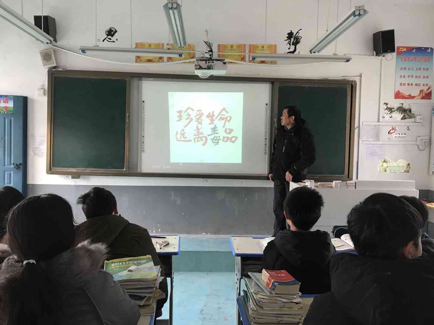 为确保此次班会课的开展,各班班主任在课前收集了大量的资料,作了精心的准备。主题课上,班主任首先通过展示吸毒对人身体伤害的图片,引发同学们心灵震憾,创设禁毒教育的氛围;利用PPT为同学们介绍了毒品形成的源头、种类,围绕毒品致命的原因、青少年沾染毒品的原因和预防毒品的方法等方面作了深入浅出的讲解,当详实的数据、形象的图片、深刻的案例展示在学生面前时,同学们被深深地触动了,大家进行了热烈的互动讨论,他们深刻地领悟到毒品给个人、家庭和社会所带来的严重危害。