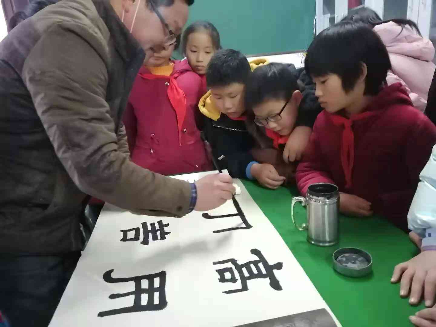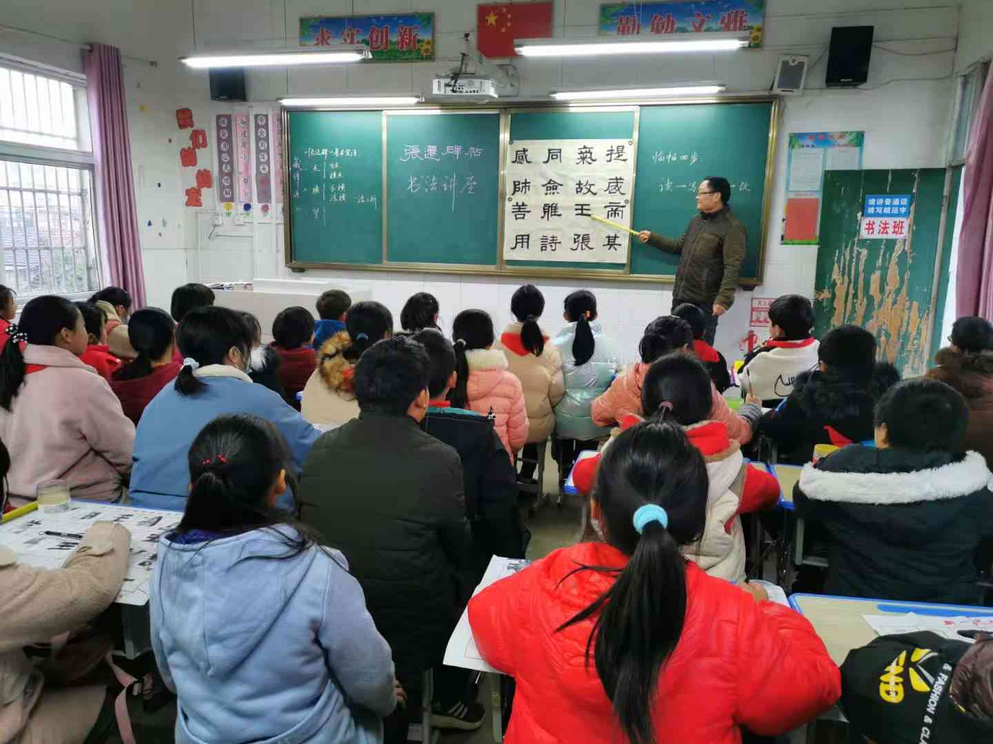 11月27日,定远县教体局行知书法教育志愿者服务队队员袁业剑老师为定东小学的师生们上了一堂精彩的书法指导课。