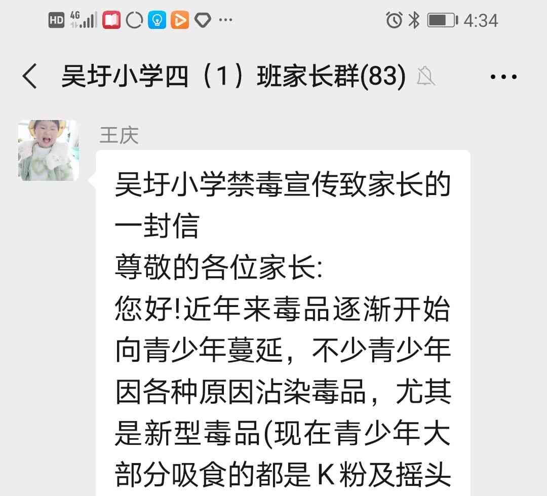 ~ 学校通过开展国旗下讲话、致学生家的一封信、主题班会等形式多样的禁毒宣传教育活动,使学生了解毒品的危害,预防毒品的基本知识及禁毒政策与法律法规,确立“珍惜美好青春,远离合成毒品、拒绝毒品,健康人生” 的意识,掌握拒绝毒品的方法和技能,养成健康文明的生活方式。(图文:张二妹 审核:童超)