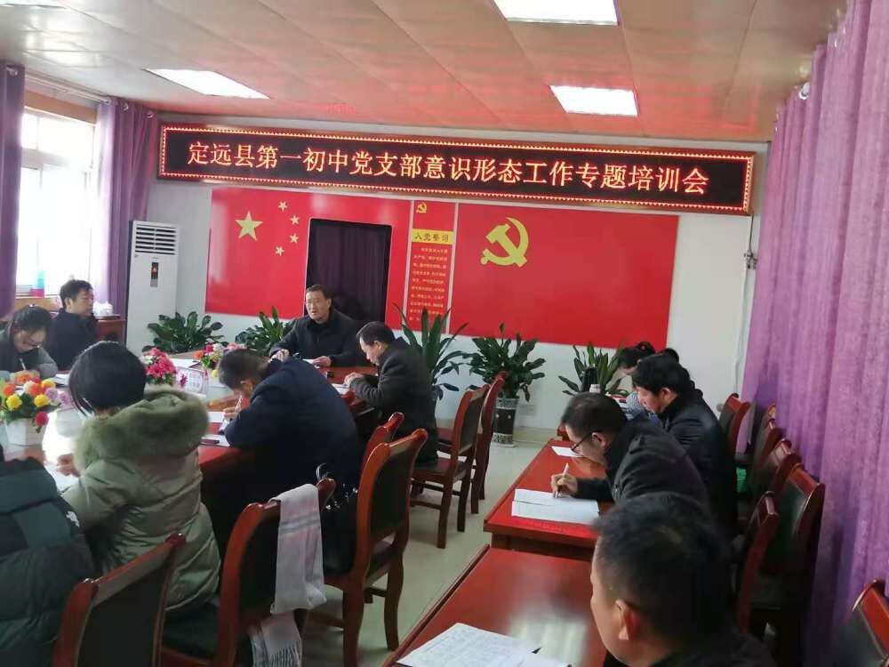 ~ 11月29日,定远县第一初中党支部在党员活动室举办了意识形态工作专题培训,全体支委、党小组长和部分党员参会。