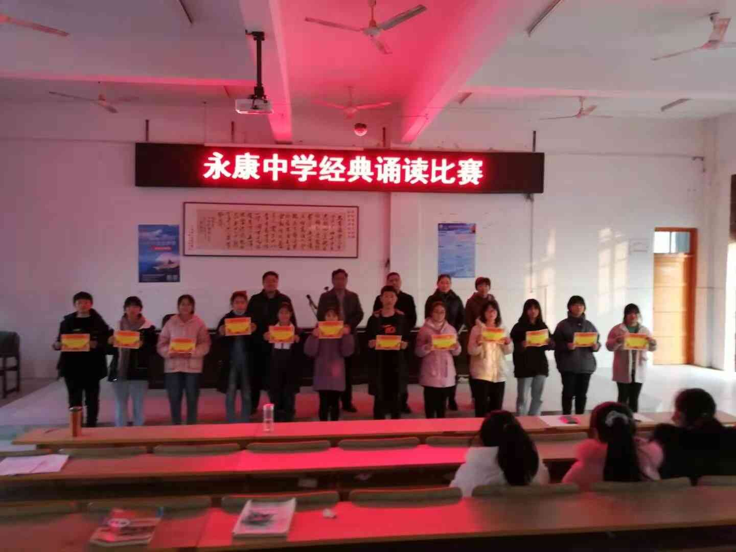 ~ 11月30日下午,定远县永康中学在多功能大厅举行经典诵读比赛活动,共有22名优秀选手参赛。