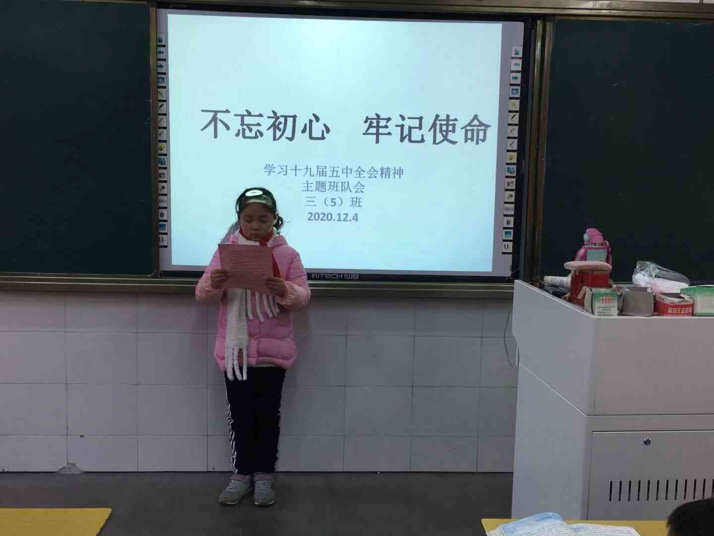 为传达学习十九届五中全会精神,加强学生的思想教育,12月4日上午,定远县职工子弟小学组织各班级召开了“学习十九届五中全会精神”主题班队会。
