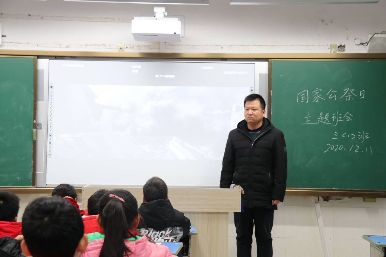 ~ 开展“勿忘国耻,圆梦中华”主题班会活动,班主任带领学生学习抗日战争的相关历史知识,讲解国家公祭日设立的意义,组织学生观看南京大屠杀的相关历史影片或视频。
