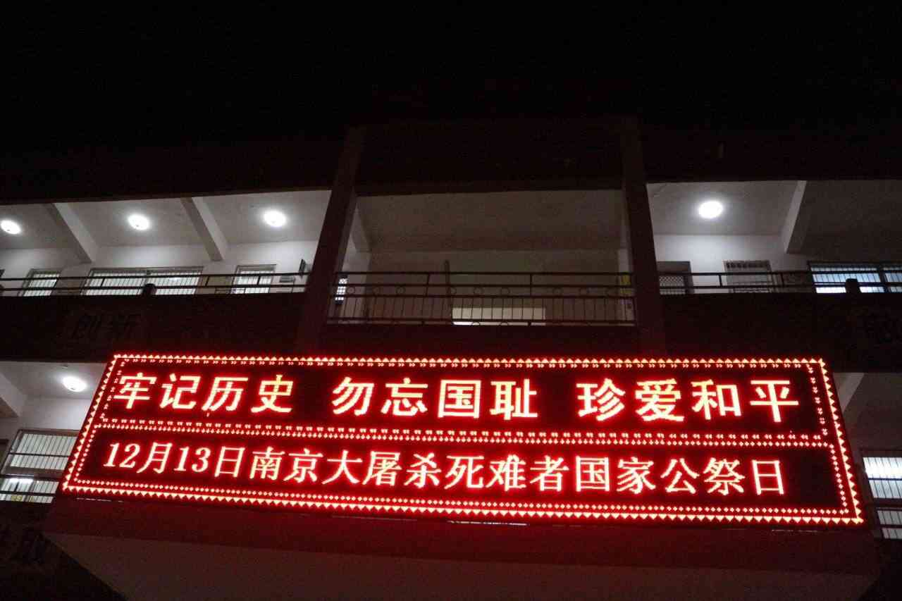 ~ 该校采取悬挂标语、播放电子屏、师生默哀、召开主题班会、观看相关视频回顾“南京大屠杀死难者国家公祭仪式”等活动形式警醒学生要谨记南京大屠杀的血腥历史,激发他们的危机意识,让学生对国家公祭日和南京大屠杀那段史实有深入了解,明确自己肩负的责任,发愤图强,把个人的成长成才梦融入到实现中华民族伟大复兴的“中国梦”中去,传递新时代“为中华民族崛起为读书”的正能量。
