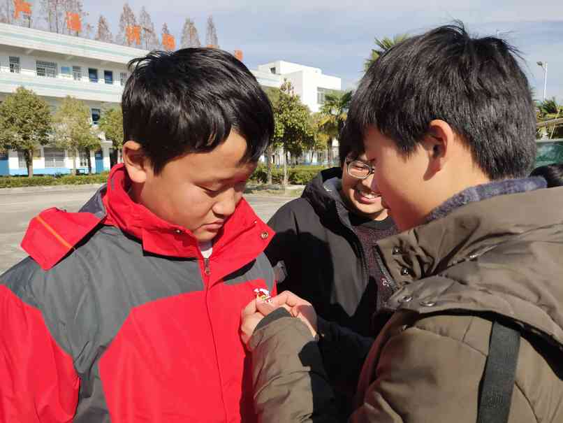 12月15日,定远县大桥初中团委积极响应团县委号召,认真组织开展了2020年新团员宣誓活动。 活动分为两个部分:1、举行新团员“举团旗、带团徽”仪式。由老团员为新团员佩戴团徽,并在优秀团员带领下,面对团旗,庄严宣誓。宣誓后,新团员代表发言。本次活动,该校团委择优吸纳了8名新团员。2、开展美化校园环境志愿服务活动,组织团员对教师办公室进行打扫。
