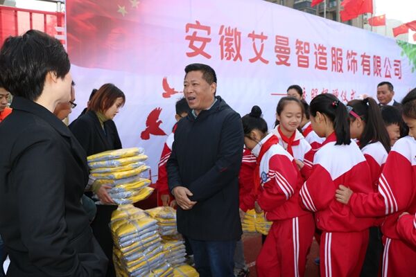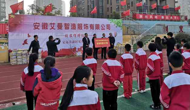 10月28日上午,安徽艾曼智造服饰有限公司校服捐赠仪式在定远县新区实验小学操场举行。