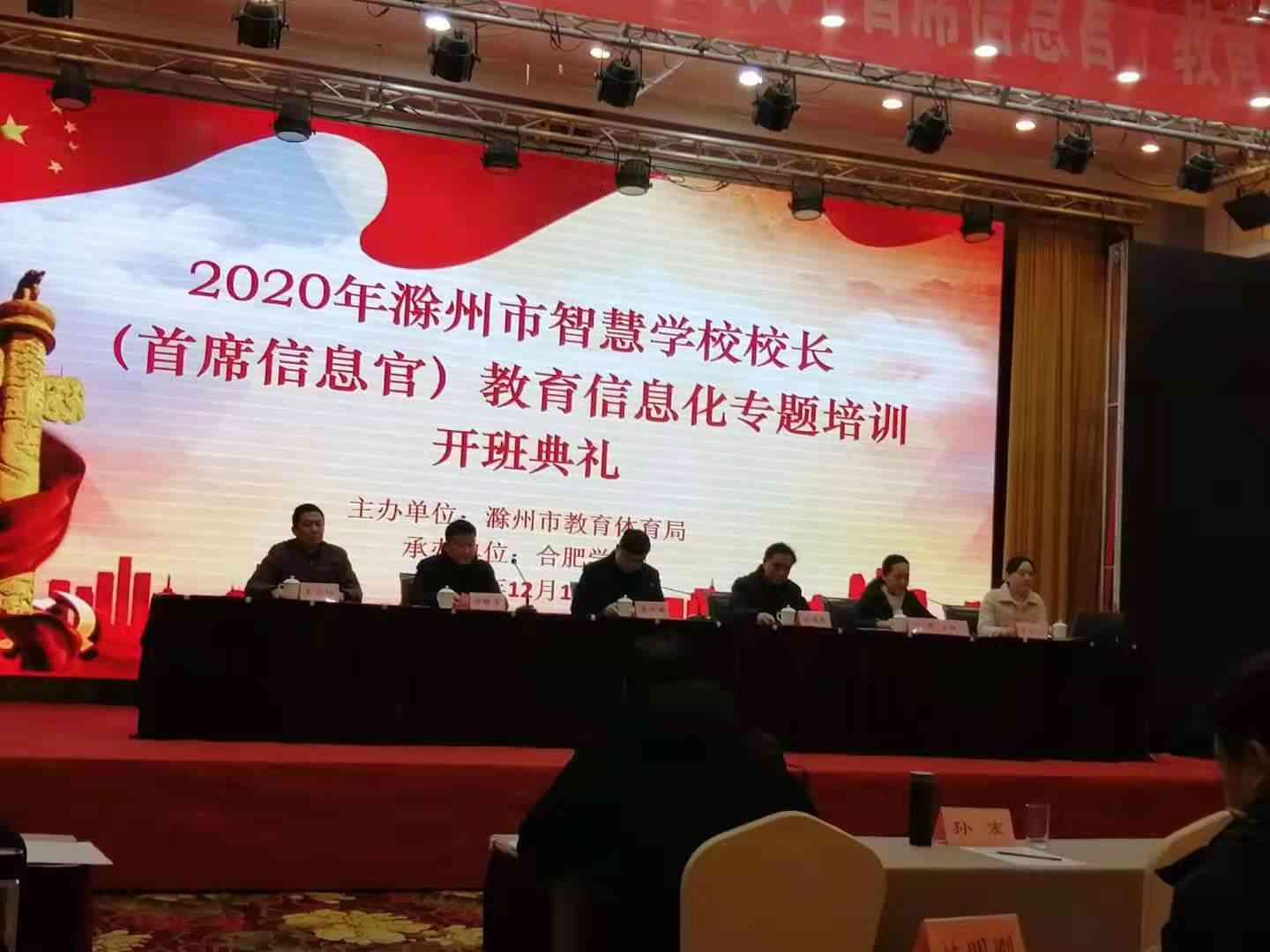 ~ 12月17-19日,由滁州市教育体育局主办、合肥学院承办的2020年滁州市智慧学校校长(首席信息官)教育信息化专题培训在黄山歙县举办。定远县教体局副局长王利、县教体局电教中心副主任于二泉以及35位智慧学校项目校校长(首席信息官)参加了培训活动。