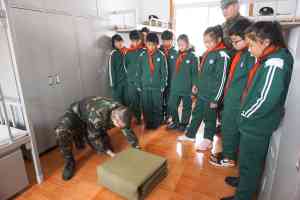 ~ 在慰问过程中,首先永康小学教育集团校长王希金,副校长章红、周翔与部队领导交流了各自近期的工作情况;接着在部队官兵的引领下,学生们参观部队训练基地、军营宿舍、健身房,了解部队官兵的集体生活,并组织叠被子教学;最后双方对今后的军民共建工作进行了探讨,一致表示要进一步加强军校共建,密切联系,切实把双拥共建工作落实到实处。学校表示会通过开展国防教育、安全教育等主题活动,强化师生的爱国主义情怀、组织纪律观念和安全责任意识。