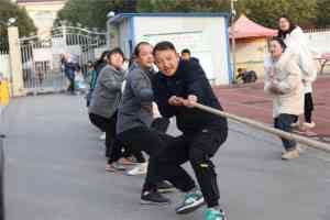 ~ 活动在永康小学教育集团校长王希金和工会主席谢宗广致辞后拉开了序幕。首先亮相的是“毽舞飞扬”, 参赛选手身手矫健轻盈,动作优美,不时引来阵阵喝彩,展示了老师们高超的踢毽子技艺和独特的风采。接着在“跳吧!我的老师”活动中各个参赛教师在相应场地进行为时一分钟的竞技,以跳绳次数多者胜出。无论是参赛教师还是观战教师,大家个个情绪高涨,全身心投入。整个比赛场面欢快激烈,紧张有序。紧接着开始“你投我接”活动,在一分钟时间内看谁投的多,速度快,皮球在投篮者和接球者之间划出一道道美丽的弧线。最后压轴的也是最精彩的活动要数“团结就是力量”这项拔河比赛了。随着裁判一声哨响,比赛正式拉开帷幕。各参赛队伍瞬间进入紧张的状态,队员个个精神振奋、斗志昂扬,十字形的长绳被老师们紧紧地抓在手上恨不得脚底生根,力拔山河。两者此起彼伏、交相辉映,成为冬日校园里一道靓丽的风景线。