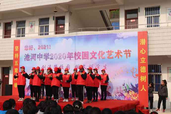 在闭幕式上,池河中学副校长杨正周进行热情洋溢的致辞,对池河中学过去一年精彩表现大为赞赏,对同学们也提出了殷殷期盼,希望同学们珍惜大好时光,认真学习,在池中放飞梦想,快乐成长。校长欧健海宣布池河中学2020校园文化艺术节闭幕式结束,“创温馨校园 做文明学生”文艺汇演正式开始。