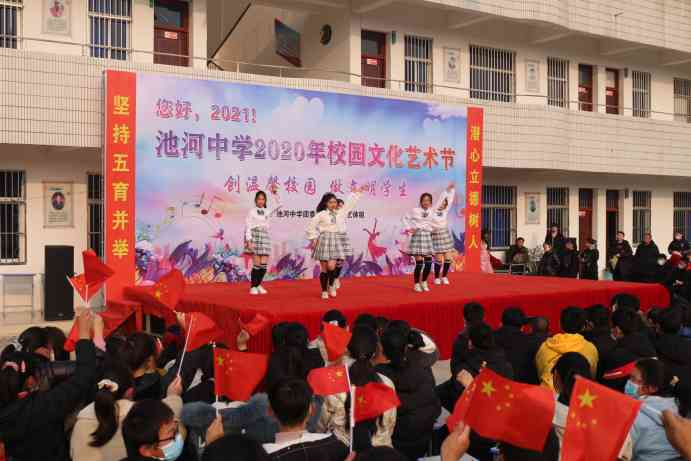 为了进一步丰富寄宿生的校园文化生活,营造温馨、向上、文明的校园文化氛围,激发寄宿生对艺术的兴趣和爱好,培养他们良好的艺术修养,12月27日下午,定远县池河中学在青春广场前举行了2020校园文化艺术节闭幕式暨“创温馨校园 做文明学生”文艺汇演,闭幕式由副校长杨正周主持。校党支部书记、校长欧健海,副校长陆培高、学生家长代表等参加了此次闭幕式并观看了文艺汇演。