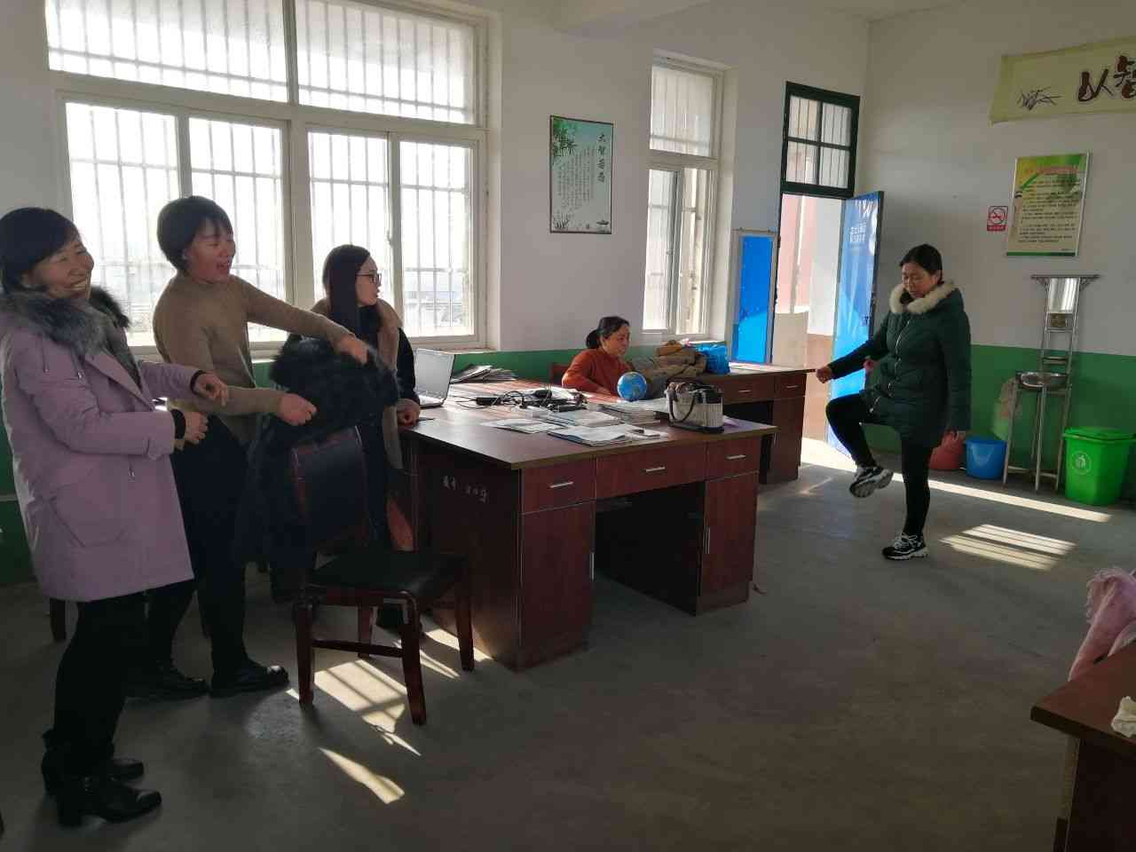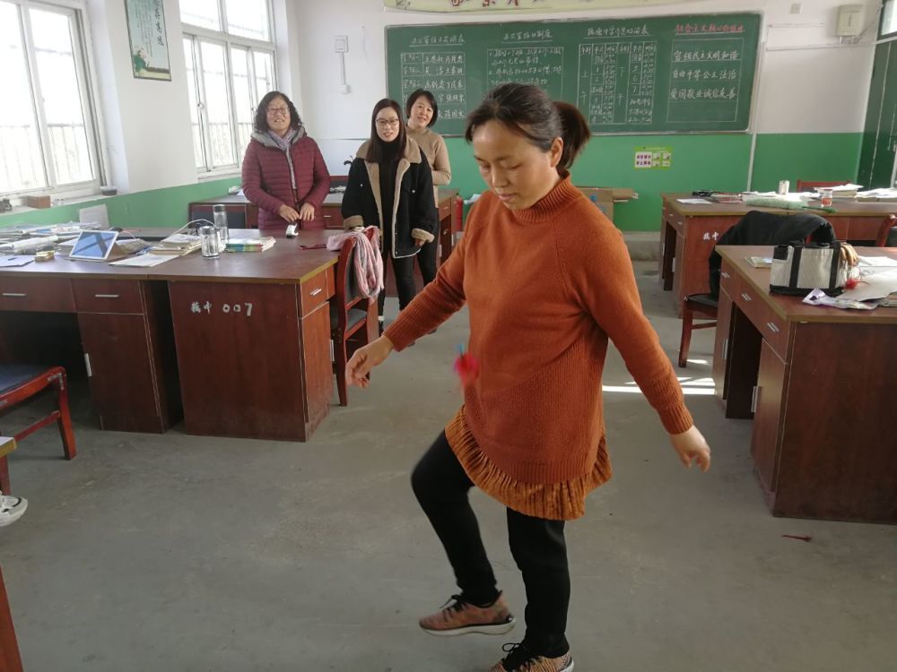 ~ 12月28日中午,定远县藕塘中学举行了“女职工踢毽子比赛”活动,迎接新年。该校工会关心女职工生活,在元旦即将到来之际,举办本次活动,深受女职工欢迎。大家积极报名,比赛中笑声不断。参赛选手心态极好,名次不重要,重在参与,在过程中体会快乐。踢毽子比赛结果:第一名:曹春兰;第二名:王 梅;第三名:吴洁 黎玲。