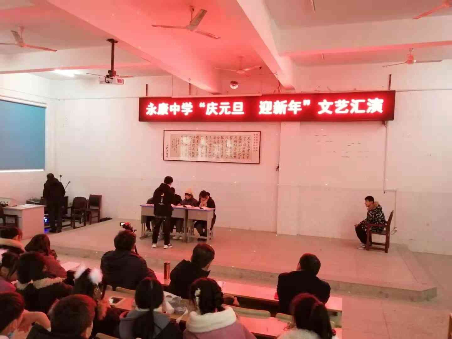 ~ 12月29日下午,定远县永康中学在校多功能大厅举行“庆元旦 迎新年”文艺汇演。 ~ 在这次“庆元旦 迎新年”文艺汇演中,各班级精心准备,内容丰富多彩,形式多样,有舞蹈、合…