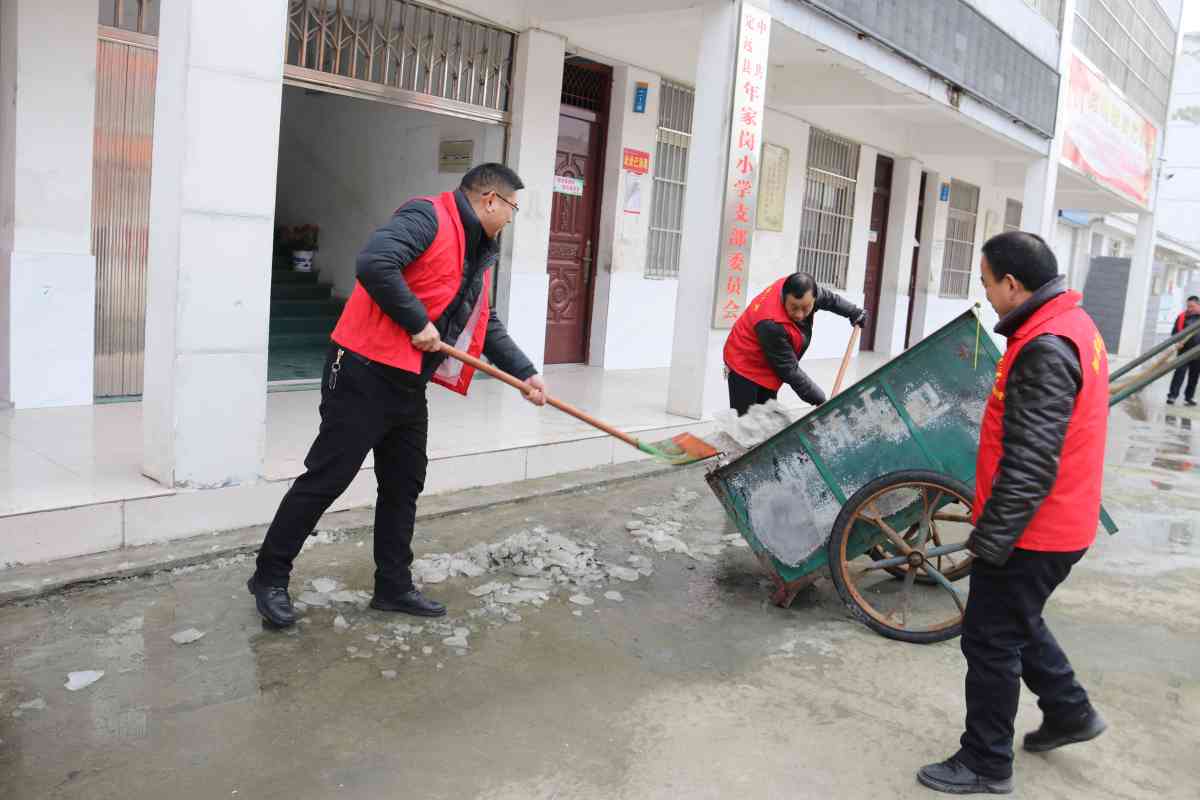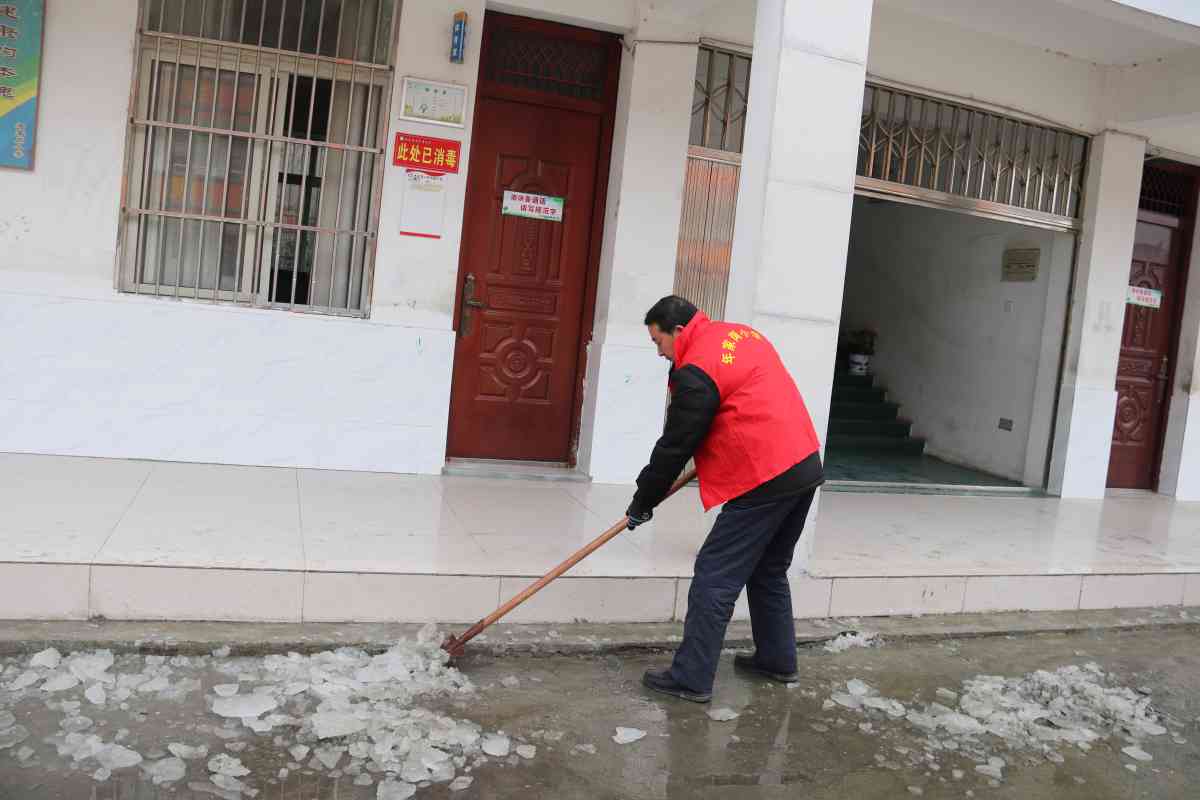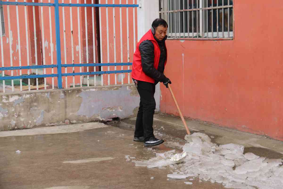 1月3日下午,定远县年家岗小学志愿者在张红园校长的带领下开展清冰活动。