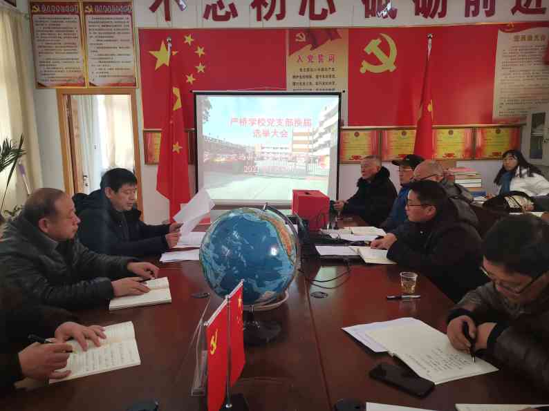 2021年1月20日,严桥学校党支部在党员活动室举行换届选举大会,会议由支部书记、校长李树先同志主持。