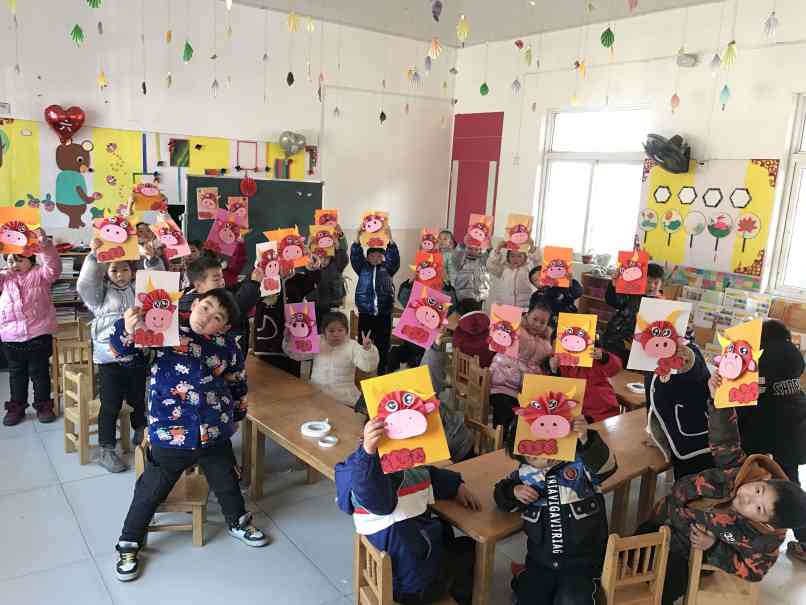 “写个福字迎新年,剪个窗花过大年”,贴春联是过年的传统习俗,写春联,送福字,迎新春……孩子们在挥毫泼墨中感受着中国传统文化和书法艺术的魅力;冰糖葫芦是我们的传统小吃,一声声吆喝象征着幸福和团圆,孩子们将水果串到竹签上,一串串酸甜可口的糖葫芦就做好了。孩子们拿着自己做的冰糖葫芦,心里可高兴了;剪纸是我们的民间艺术,孩子们通过剪纸感受到了传统手工的奇妙,窗花不仅烘托了喜庆的节日气氛,其对称、形态各异的特征、生动有趣的美深深吸引了幼儿;欢欢喜喜过牛年,在手工活动的过程中,孩子们感受到牛年真的来啦。