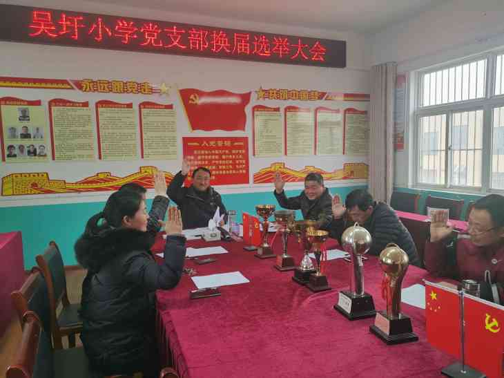 ~ 1月21日,定远县吴圩小学党支部在党员活动室召开换届选举大会。吴圩小学党支部在职全体党员参加会议。