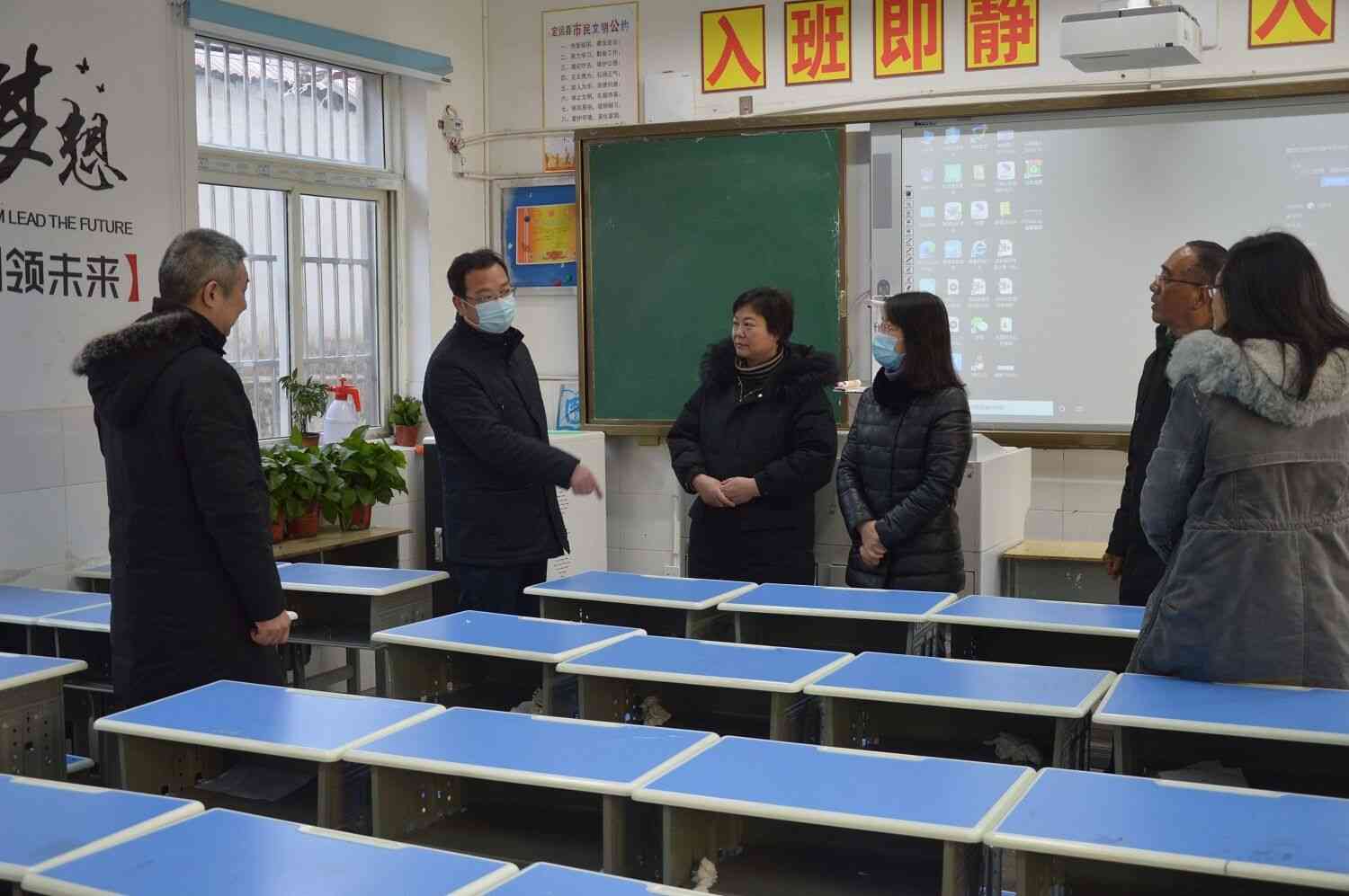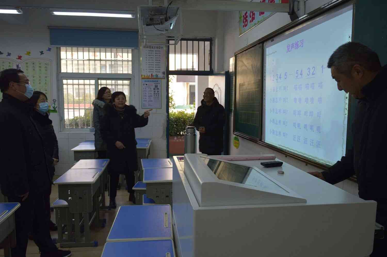 ~    为了解学校信息技术应用水平,推动智慧课堂平台教学应用,1月28日上午,定远县委教体工委书记、教体局局长王光明,副局长王利、电教中心孟献贵一行,深入职工子弟小学调研、指导智慧课堂平台应用工作。学校负责人吕兴会等相关领导陪同检查。