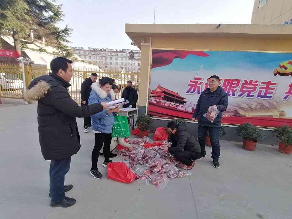 ~ 春节将至,年味渐浓。定远县第一初中响应消费扶贫的号召,从定远县鸿运养殖农民专业合作社选购了能仁寺黄牛肉,慰问学校在职及离退休教职工,以实际行动支持消费扶贫,助力定远县脱贫攻坚。