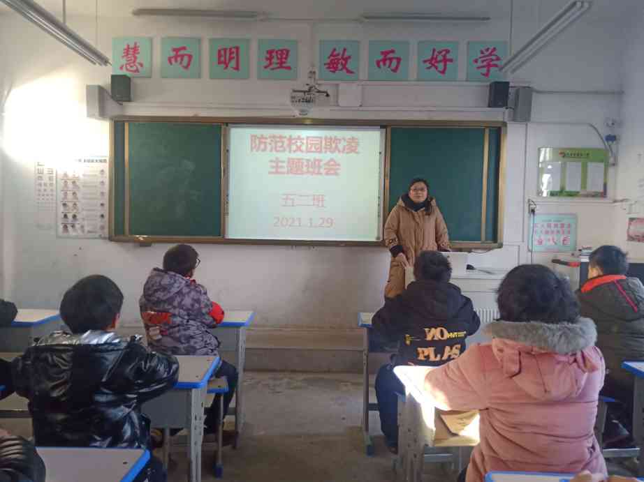 1月29日,各班组织开展了“防范校园欺凌,建设和谐校园”为主题的班会活动。主题班会上,班主任老师向学生讲解了校园欺凌的严重危害,引导学生思考,促使学生形成正确的价值观和是非观,同时,还就如何预防自己对其他同学欺凌,如何提高学生的自我保护意识等方面进行了阐述。