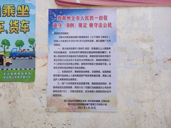 近日,定远县能仁学校广泛宣传禁止燃放烟花爆竹。为促进文明城市建设,燃放烟花爆竹虽是传统的民间习俗,然而,烟花爆竹大量集中燃放会导致空气污染,严重的还易引发火灾,造成人身伤亡事故和财产损失。为减少大气污染,创建洁净、有序、文明、和谐的工作学习生活环境,让能仁的天更蓝、空气更清新、环境更优美、生活更宁静,能仁学校积极开展宣传禁燃禁放系列活动。(图文王刚 审核 张中保)