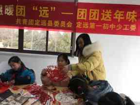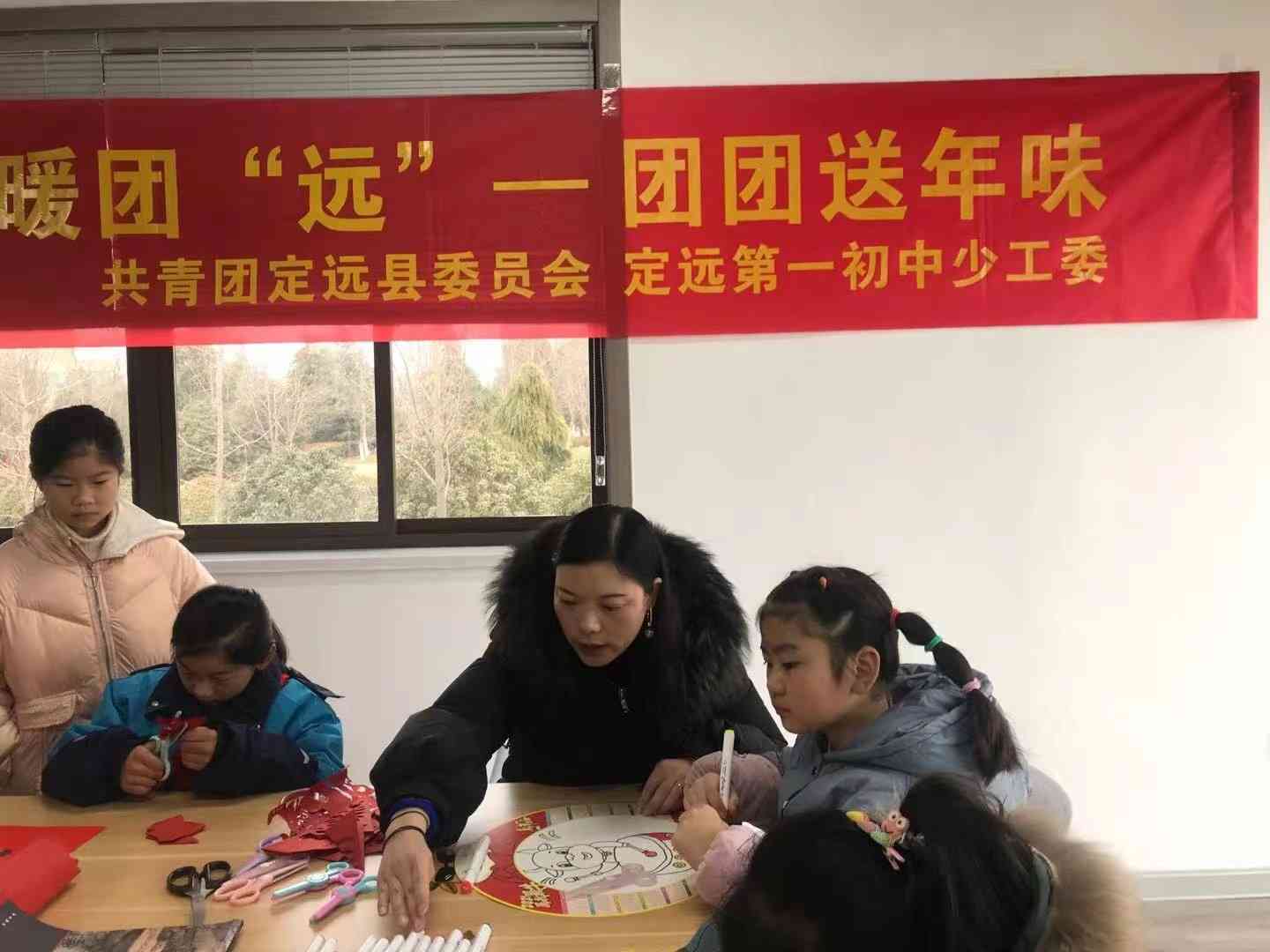 ~ 定远县第一初中少工委的刘厂、刘晓燕、程光岩三位老师志愿参加了此次活动,与留守的孩子们一起过年。刘厂老师,帅哥一枚,九年级英语备课组长、英语骨干教师,自幼爱好书法,书法作品多次在国内大赛中获奖。刘晓燕老师,校团委副书记、少工委负责人,擅长国画、篆刻,刘老师课堂教学经验丰富,是滁州市优质课大赛一等奖获得者。程光岩老师,校工会委员,擅长中国画、美术设计,专攻剪纸艺术,多次辅导学生在省、市、县艺术类比赛中获奖,程老师爱好广泛,酷爱乒乓球,是学校女子职工乒乓球队的领军人物。(图:刘晓燕 文:刘发奇)