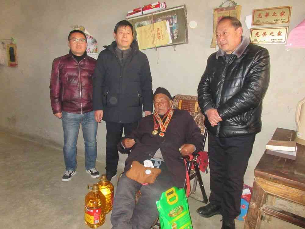 2月2日,定远县严桥学校党支部书记李树先一行前往抗美援朝老战士樊开和和刘井龙家中走访慰问,向老人送上米油等春节慰问品,并对老人曾经为国家做出的贡献表示崇高的敬意和诚挚的感谢,并为他们佩戴上“中国人民志愿军抗美援朝出国作战70周年”纪念章。