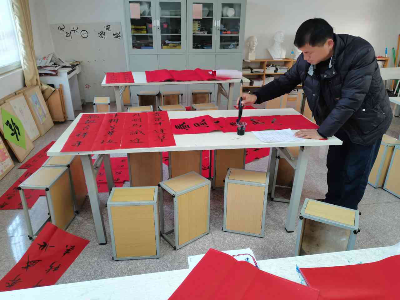 ~ 此次活动中,一共书写春联和福字200余份,前来领取对联的教师,手捧散发着淡淡墨香的大红对联,心中充满了激动和喜悦,嘴里还不住地说:还是手写的对联好,这有着浓浓的年味!(供稿:李章国 审核:张道胜)