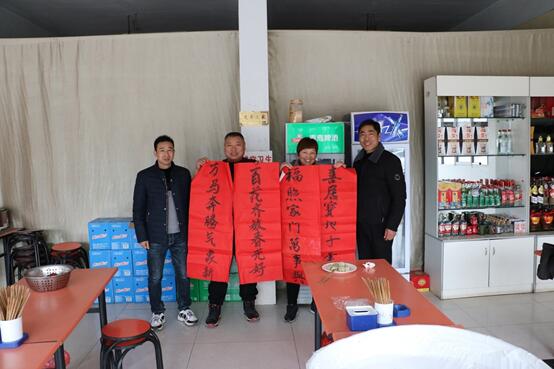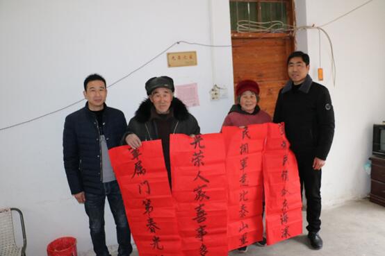 ~ 活动现场,笔墨铺就,青洛初中8名师生书法爱好者挥毫泼墨,他们手中的毛笔龙腾蛇舞,一幅幅饱含着浓浓年味、寓意吉祥的春联、福字跃然纸上。志愿者们把载满年味的大红春联送到学校退休老教师、“光荣之家”的退役老兵及部分社区群众的家中,提前为他们送去了新春的祝福。