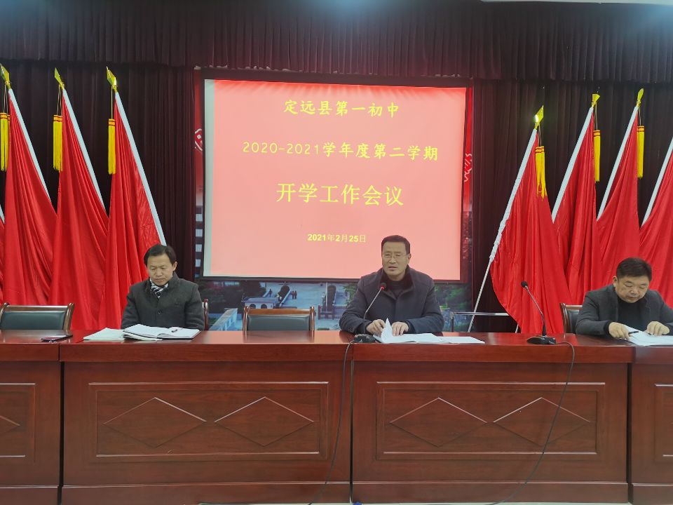 ~ 2月25日,定远县第一初中在校报告厅召开了2021年春季学期开学工作部署会议。会议由校支部书记、校长张书清主持,全体教职工参加了会议。