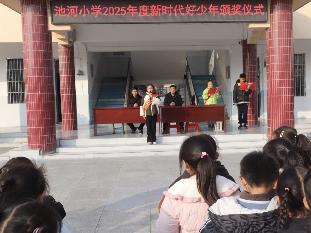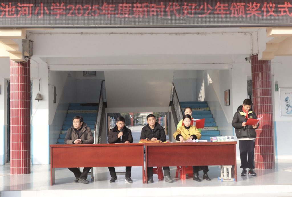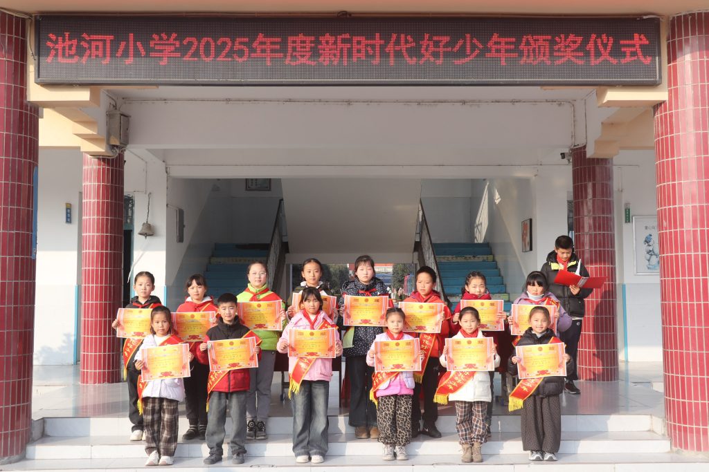 ~ 为树立榜样,激励全体学生崇德向善、见贤思齐,12月18日下午,定远县池河小学隆重举行2025年度“新时代好少年”颁奖仪式。全校师生齐聚楼前广场,同学们佩戴红领巾和袖章,精神饱满地参与了此次活动。